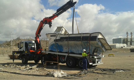 "Salvaje Dos" Embarcación auxiliar para pequeños trabajos submarinos, batimetrías, inspecciones y apoyo de maniobras. Eslora: 8,6 mts. Manga: 2,58 mts. Puntal: 1 mt. Potencia: 120 hp. Transportable en camión.
